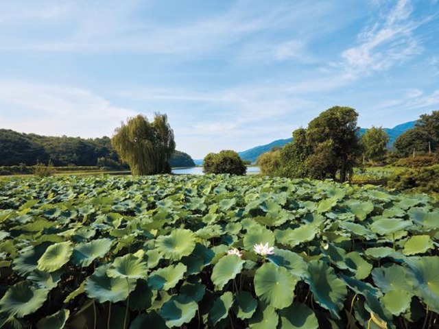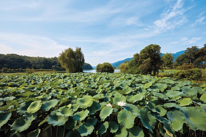 하늘을 향해 커다란 잎을 벌리고 그 가운데 수줍게 꽃을 피운 연. 단아한 모습에 넋 놓고 보다 보면 어느새 울창한 나무가 우거진 다산생태공원에 다다른다. 남양주는 전체 면적의 84%가 상수원 보호구역인 데다 땅의 70% 이상이 산림 보존 지역으로 자연환경이 쾌적하다.