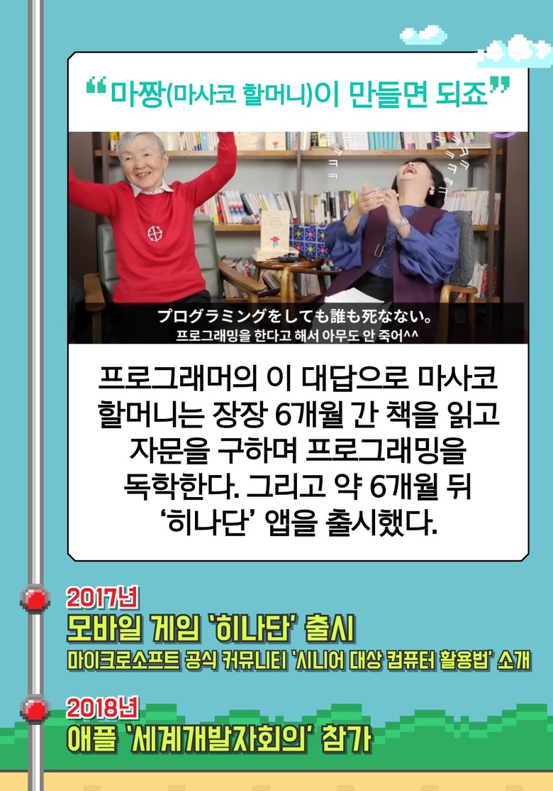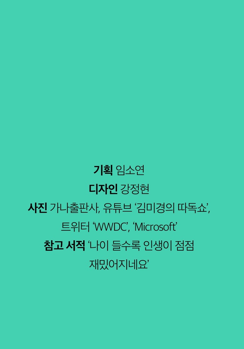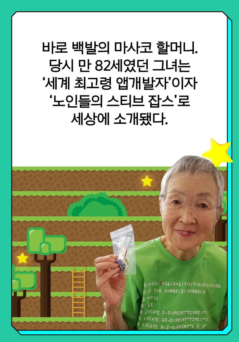 한 평생 컴맹이었다는 백발 할머니가 82세에 앱개발자로 애플의 CEO와 마주하게 된 스토리 추천 기사 중장년 맞춤 국가자격증, '산모·신생아 건강관리사' 제2의 인생 성공 비결! 재능과 경험을 교류하세요 평창의 '김 반장', 배우 김청의 귀촌일기