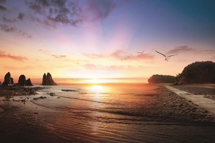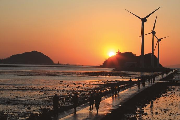 낙조와 풍력발전기의 환상적 컬래버레이션 탄도 바닷길