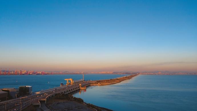 바다와 호수 사이로 불어오는 바닷바람을 즐긴다 시화방조제길