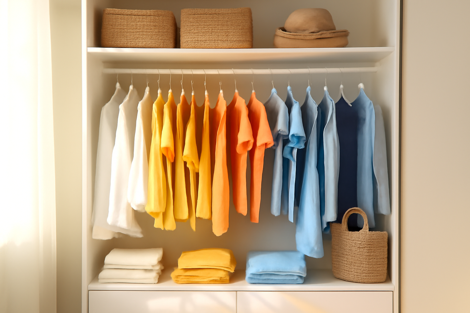 첫 번째로 해야 할 일은 바로 옷장 대청소예요! 🙌 작년 여름 옷들 중에서 한 번도 안 입은 것들, 사이즈가 안 맞는 것들은 과감하게 정리해주세요.