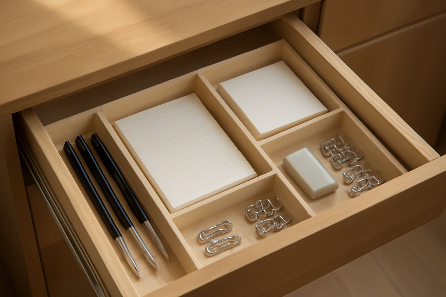 작은 성취감이 생기면서 다음 단계로 자연스럽게 이어집니다. 특히 자주 사용하는 책상 서랍부터 시작하시면 효과를 바로 느끼실 수 있습니다.