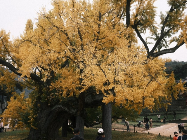 은행나무가 워낙 크다 보니 햇볕을 비교적 덜 받는 부분은 비교적 초록빛이다. 그래서 바깥쪽의 은행잎이 모두 떨어지면 비로소 색을 물들인다. 도동서원을 방문하는 관광객들은 대부분 이 은행나무를 보기 위해 모인다.