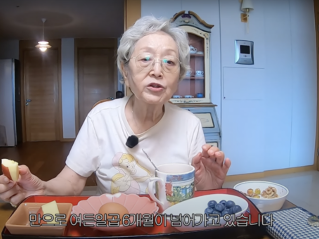 지난 13일, 김영옥은 유튜브 채널 ‘김영옥’에서 매일 아침 챙겨 먹는 식단이라며, 블루베리 11알, 삶은 달걀 한 개, 사과 반쪽을 소개했다.