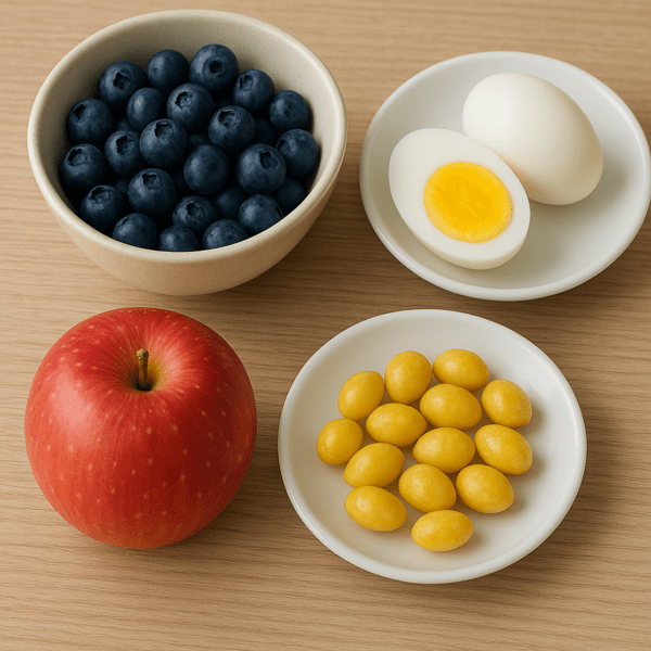 매일 아침, ‘블루베리’, ‘달걀’, ‘사과 반쪽’