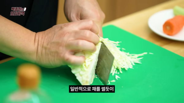 양배추를 채써는 모습을 보여주는 백종원씨/유튜브 채널 '백종원' |