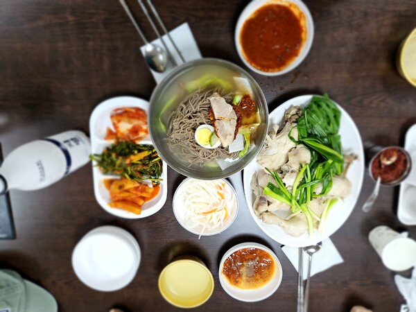 배추·무·부추김치 맛에서 연륜이 느껴졌다. 담백하고 시원한 찜닭과 막걸리는 여름철 열대야의 피로를 가시게 해주는 ‘보신’ 음식이었다. 막국수 국물은 기름진 위장을 말끔하게 청소시켜 주었다. 마음속에 어른거리는 불안, 긴장, 압박감도 시원한 포만감 속에서 자취를 감췄다.