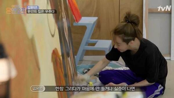 화가로도 활동 중인 김완선은 자신의 자화상을 주로 그리는 것으로 유명하다. 자신의 전시회도 열었던 그녀는 그림을 ‘나에 대한 치유’라고 설명했다.