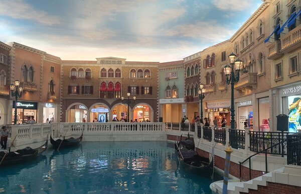물길을 가운데에 두고, 양옆에는 쇼핑몰이 있으며 물길을 따라 운행하는 곤돌라를 유료로 타며 경관을 감상할 수도 있다.