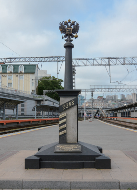 9288이란 블라디보스토크에서 모스크바까지 철로의 길이입니다. 제정 러시아의 마지막 황제인 니콜라이 2세가 황태자 시절인 1891년 5월 31일 기공식을 주관한 장소입니다. 시베리아 횡단열차는 이곳에서 출발합니다.