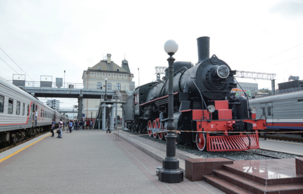 옛 기관차가 전시돼 있는 블라디보스토크 역 플랫폼 /여행작가노트 |