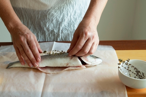 생선을 구울 때에는 종이호일 위에 생선을 놓고, 기름을 살짝 표면에 발라준 다음 종이호일을 접어 생선을 감싸서 굽는 방법도 있다. 이렇게 생선구이를 하면 훨씬 더 촉촉하고 담백한 맛을 즐길 수 있다.