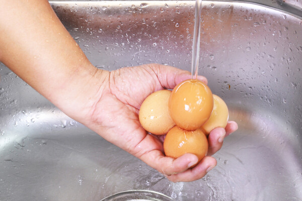 달걀 겉면에 닭 똥 등이 묻어 더럽다는 이유로 물에 씻어 보관하는 경우가 있다. 그러나 달걀을 물에 씻으면 표면의 보호막이 파괴되면서 세균을 포함한 각종 오염 물질이 내부로 흡수될 수 있다. 이럴 경우 달걀은 더욱 빨리, 쉽게 변질된다.