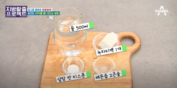 채널A ‘지방탈출 프로젝트’에서도 아이돌 물에 대해 자세히 다뤘었는데, 만드는 법 역시 간단해 쉽게 따라 해볼 수 있다. 준비물은 물과 녹차와 설탕, 레몬만 있으면 된다.