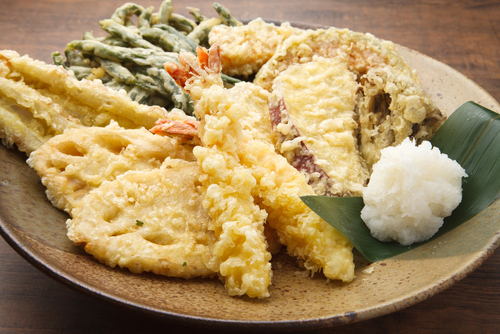 야채 튀김이 중심이 된 이유는 16세기 일본에 유입한 포르투갈 선교사들 덕이다. 그들은 금식일 동안 고기를 먹지 않기 때문에 야채 튀김을 전파했다. 일본에서 야채 튀김이 오랜 시간 자리 잡으며 튀김 음식의 본고장이 되었다.