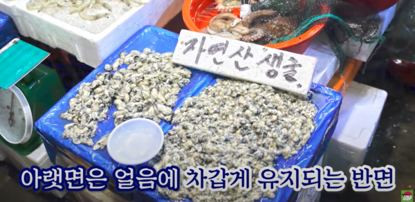 재래시장에서 판매되는 알굴의 경우 유통기한에 더 취약할 수밖에 없다. 아랫면은 얼음에 닿아 차갑게 유지되는 반면 위쪽은 공기에 노출되고 있기 때문이다.