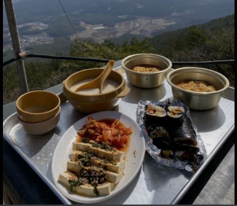 ◇ 등산가서 정상에서 라면과 김밥, 막걸리 한잔은 일품이다. 그러나 건강을 생각한다면 산에서도 배불리먹는 것은 현명하지 못하다. |