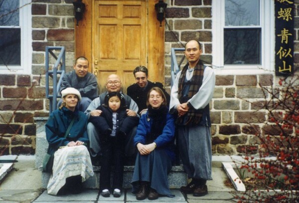 ◇ 미국 뉴욕의 불광선원 앞에서 주지 휘광 스님(뒷줄 가운데)과 함께 일미 스님(앞줄 맨오른쪽)과 수미 런던(앞줄 왼쪽에서 세번째), 하버드 불교학생회원들이 앉아 있다. [사진 일미 스님] |