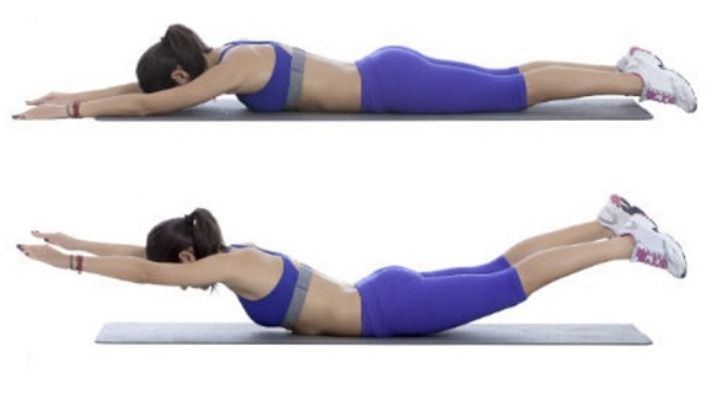 허리·둔근 강화 운동이다. 엎드린 채로 팔을 머리 위에 뻗는다. 팔과 다리는 살짝 구부려 준다. 몸이 아치형이 되도록 손발을 올렸다가 내려주는 동작을 반복한다. 너무 과하게 허리를 들어 올리면 허리에 부담이 갈 수 있어 유의해야 한다. 또한 반동을 사용하면 운동 효과가 반감된다.
