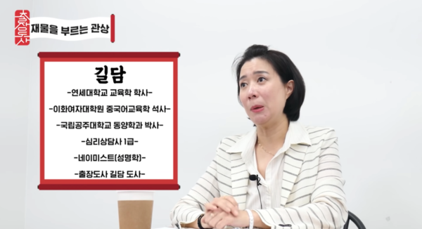 이 이야기를 전한 길담 도사는 연세대와 이화여대에서 각각 교육학 학사, 석사를 수료하고, 공주대에서 동양학과 박사과정으로 공부를 마친 엘리트다. 현재는 플레이스토어에서 5만회 이상 다운로드 된 기록이 있는 인기 애플리케이션 ‘출장도사'에서 왕성하게 활동중이다.