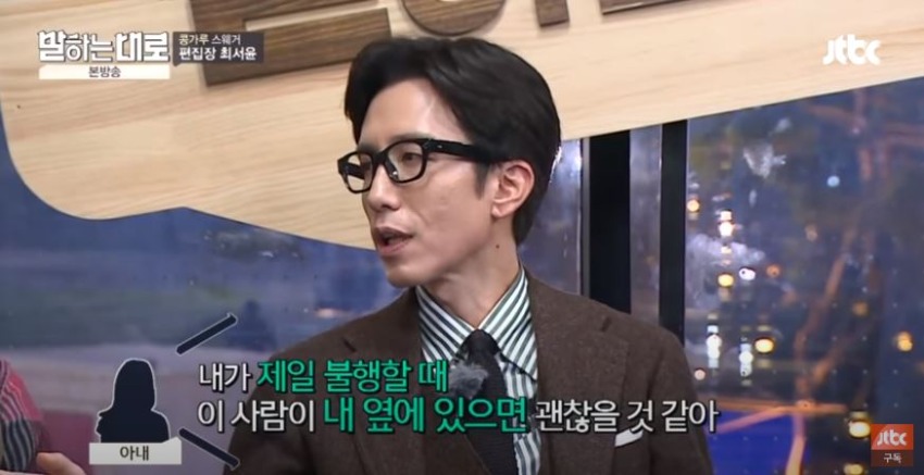 “제가 콤플렉스가 뭐냐면 부모님이 이혼하셨어요. 그런데 10년 만에 아버지를 뵙고 아내에게 인사를 시킨 거죠. 근데 분위기가 너무 안 좋아서 견디기 쉽지 않더라고요. 아내 앞에서 자존심도 상하고 치부를 들켰다는 생각마저 들었어요. 민망하게도 살짝 눈물이 났어요. 근데 아내가 저를 다독여주면서 한마디 하더라고요.