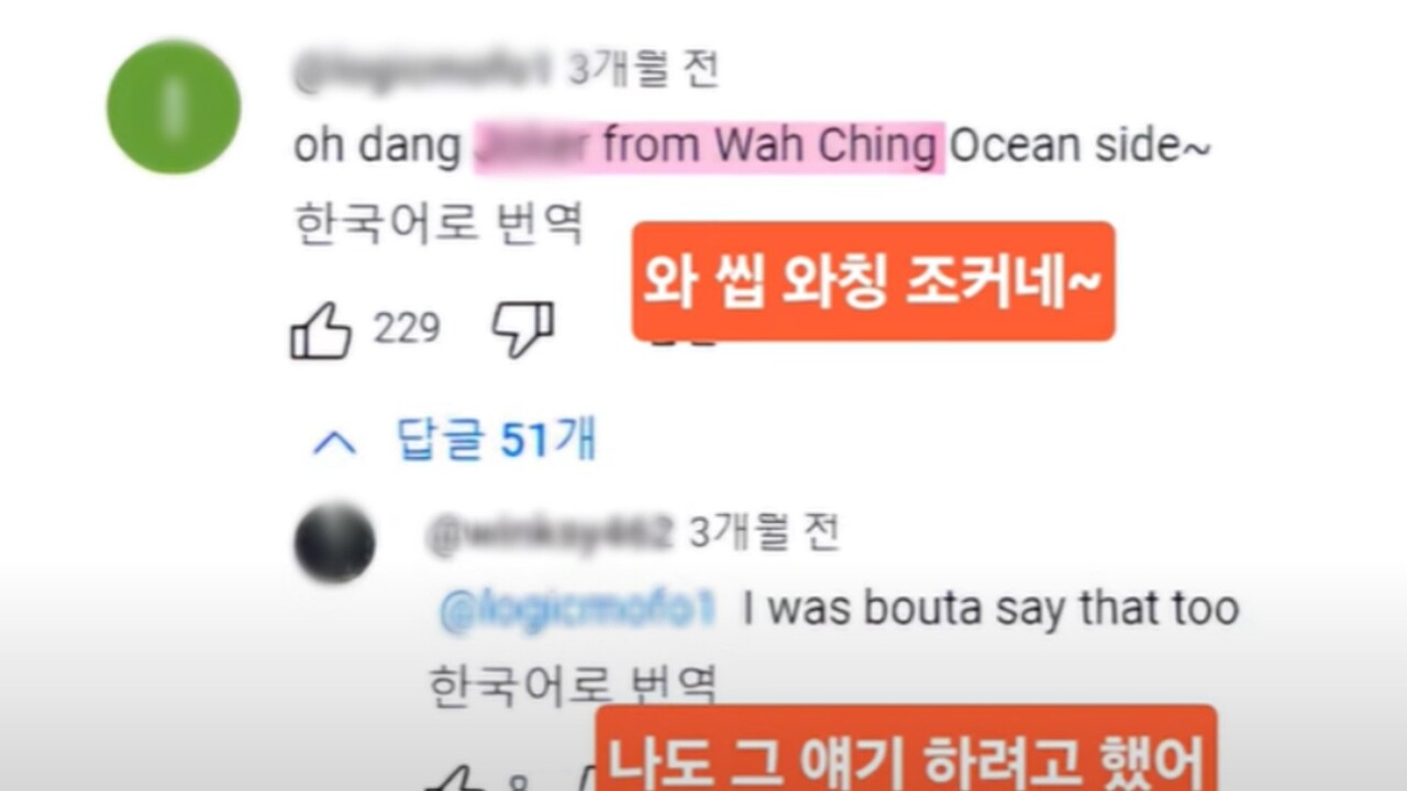 실제로 A씨가 출연한 유튜브 영상 댓글을 보면 "오, 와칭 OO이다", "나도 그 얘기 하려고 했어" 등 그를 알아본 듯한 미국 네티즌들의 댓글이 달린 걸 볼 수 있다.