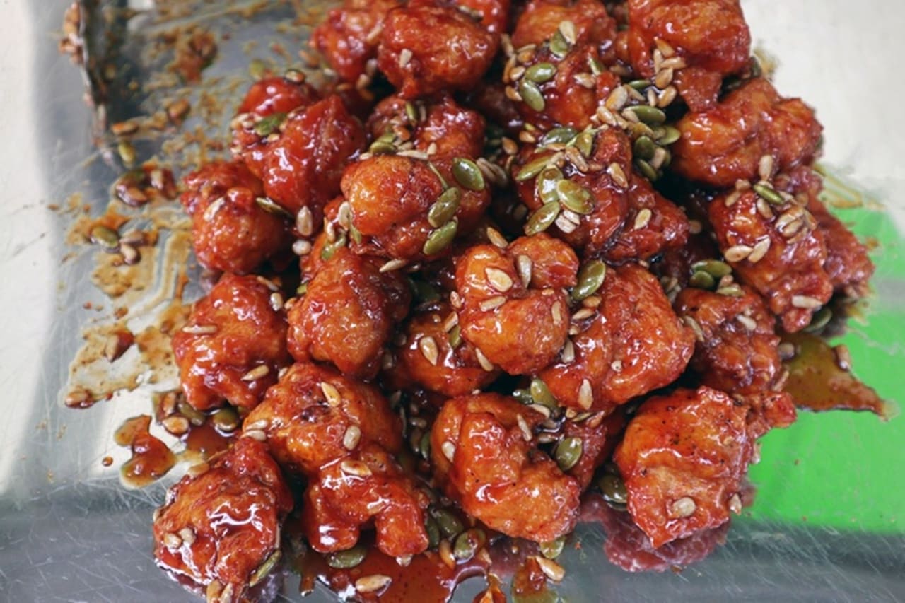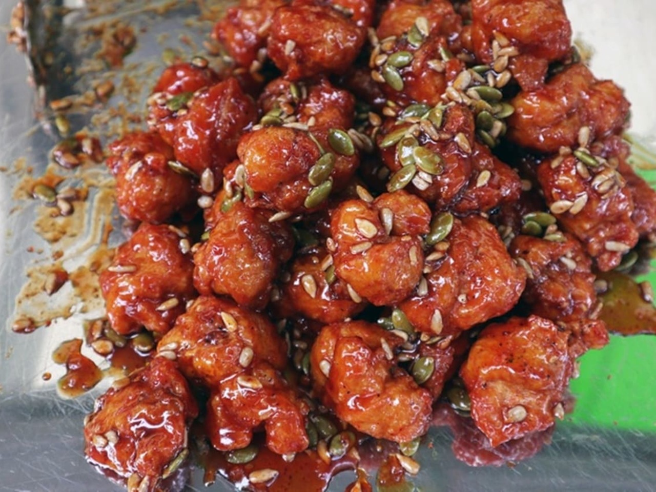 반면, 닭강정은 튀김 과정이 한층 더 복잡하다. 닭을 한입 크기로 잘라 전분이나 얇은 튀김옷을 입힌 뒤 두 번 튀기는 경우가 많다. 이후 조청이나 물엿을 베이스로 한 끈적한 양념을 입혀 다시 졸이듯 코팅한다. 이 과정 덕분에 시간이 지나도 쉽게 눅눅해지지 않고, 겉이 단단하게 코팅된 식감이 유지된다.