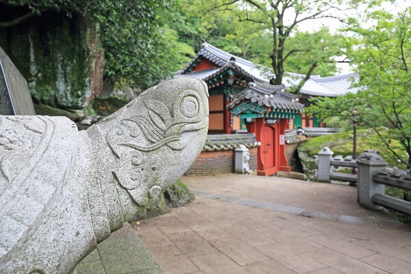 암자는 금오산 자락의 해안 절벽 위에 자리하고 있어, 절에 오르는 길 자체가 하나의 수련이자 명상처럼 느껴진다.