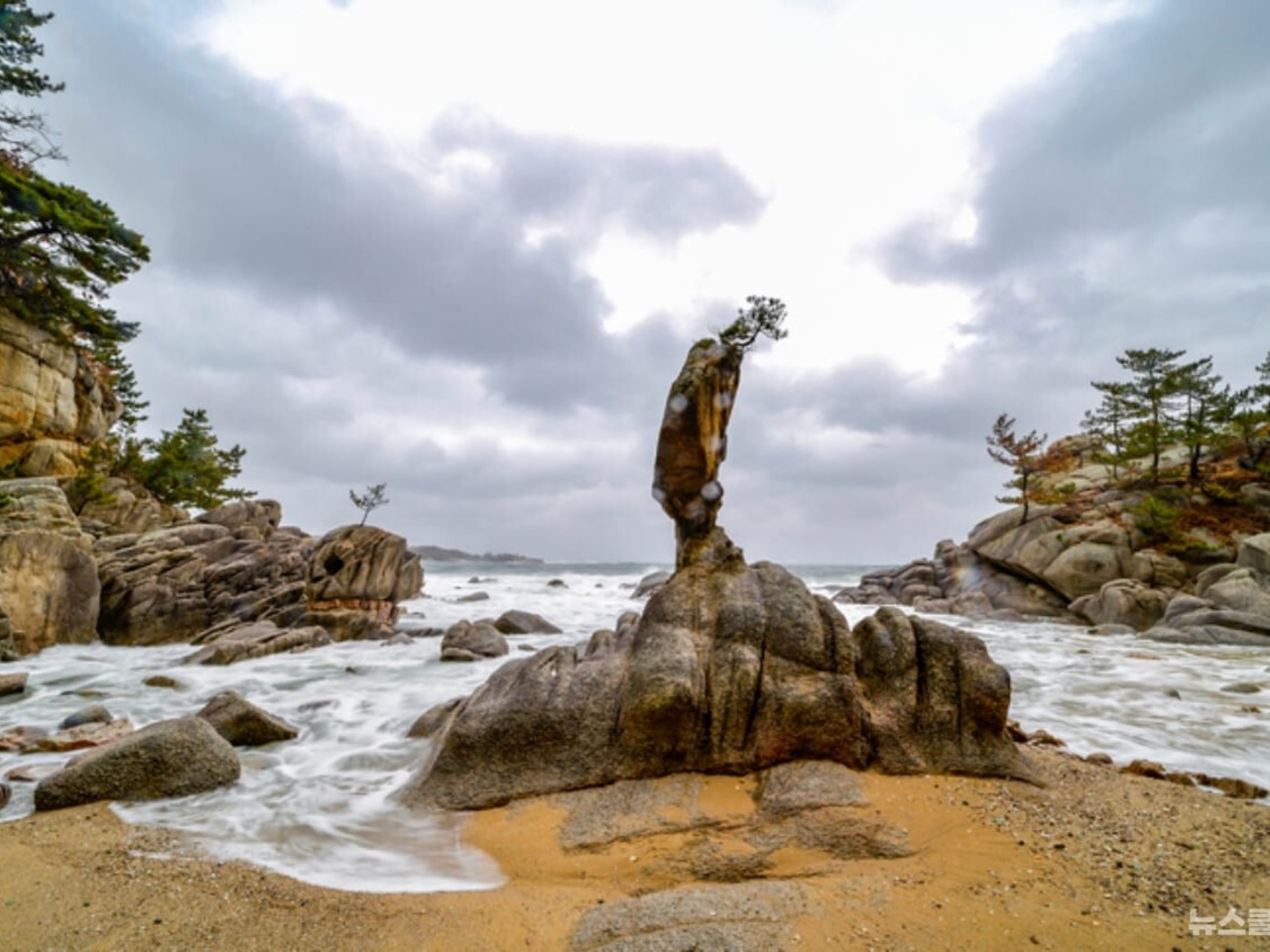 강원도 고성군 죽왕면에는 보기 드문 이중 풍경을 품은 해변이 있다.