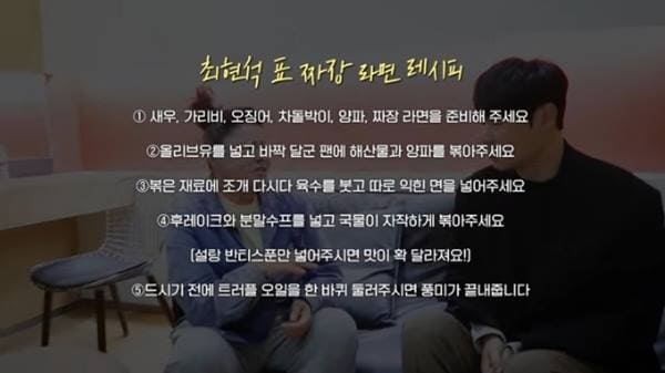 최현석 셰프가 '특제' 짜장라면 레시피를 공유했다.