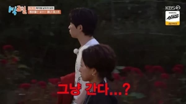 지난 6일 방송된 KBS2 예능 프로그램 '1박 2일 시즌4' 244회는 '가을 남자의 자격' 두 번째 특집으로 꾸며졌다. 이날 방송에는 출연진 6명을 대상으로 '매너 테스트'가 진행됐다.