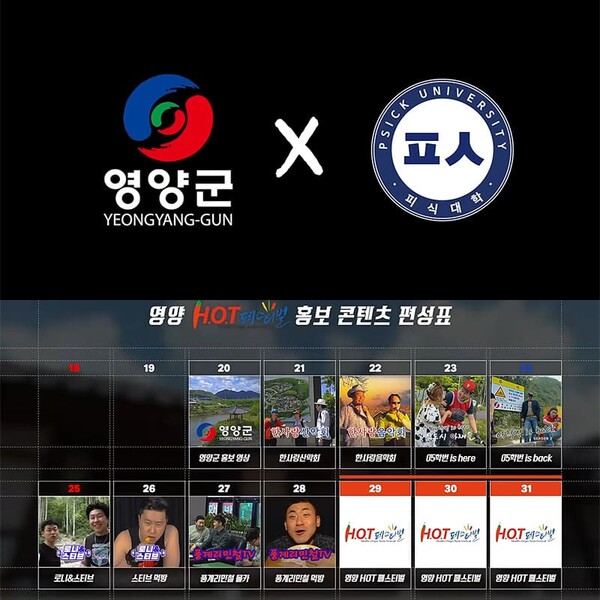 이어 "이외에도 피식 대학에서 영양군 발전과 홍보에 도움을 주려고 노력하고 있는 것으로 알고 있다"라며, "이번에 공식적으로 영양군의 관광명소 안내와 대표 축제인 '영양고추 H.O.T 페스티벌' 홍보를 제안 드려볼까 한다"라고 밝혔다.