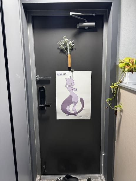 이 누리꾼은 해당 띠부씰을 현관문에 부착했다. 띠부씰의 압도적인 크기에, 마치 포스터를 붙여놓은 것 같은 모습이었다.