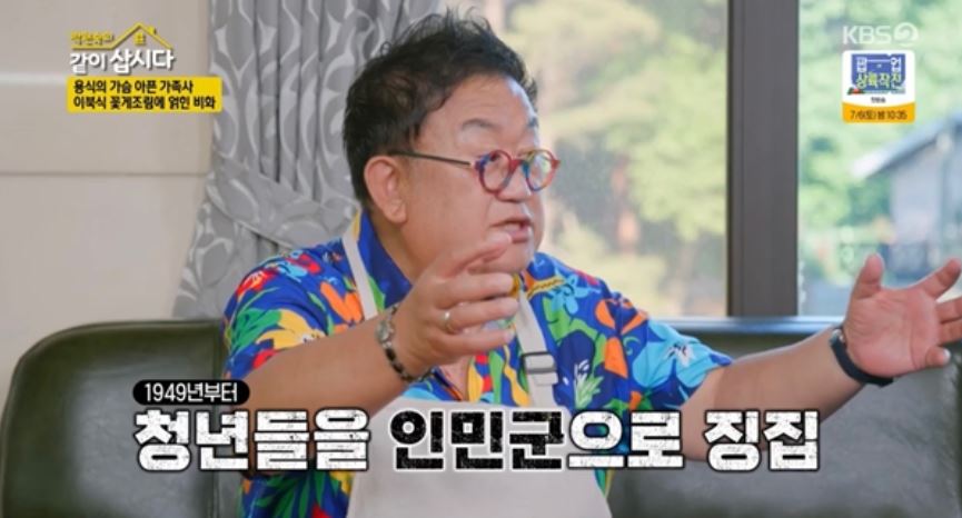 이에 이용식은 "아버지도 남한으로 오셨다. 우리가 나온 이유가 엄마 동생이 두 분 계셨다. 1950년에 6.25 전쟁이 나지 않았냐. 1949년부터 북한에서 청년들을 인민군으로 강제 징집했다"라고 당시를 회상했다.
