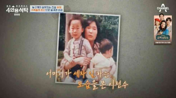 이천수는 "사춘기 때 엄마가 돈을 벌면서 백화점에서 차를 닦고 있는 모습을 봤다. 세차하는 걸 보고 아는 척을 못 하겠는 거다. 그 장면이 너무 창피하다"라고 털어놨다. 그러면서 "커보니까 그게 별 거 아니지 않나. 엄마가 세차하는 모습이 그때는 너무 창피했다"라고 했다.