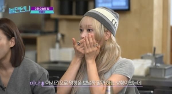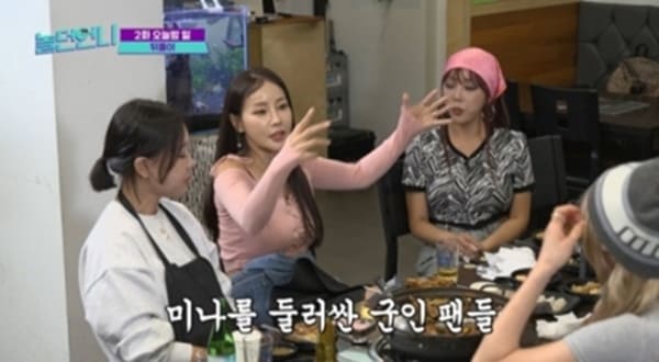 미나는 "헌병대부터 매니저까지 사색이 돼서 달려왔다. 나이가 너무 어려서 내가 선처를 해달라고 해서 영창까지는 안 갔는데 우연히 한 명이 한 게 아니라 다같이 짜고 한 거라 죄가 심해졌다"라고 설명했다. 이를 들은 출연자들은 충격에 빠졌다. 이지혜는 "여자 가수들은 섹슈얼한 모습도 보여줘야 하니까 그런 고충들이 좀 있다. 행사 같은데 가면 잡고 만진다"라며 공감하는 모습을 보였다.