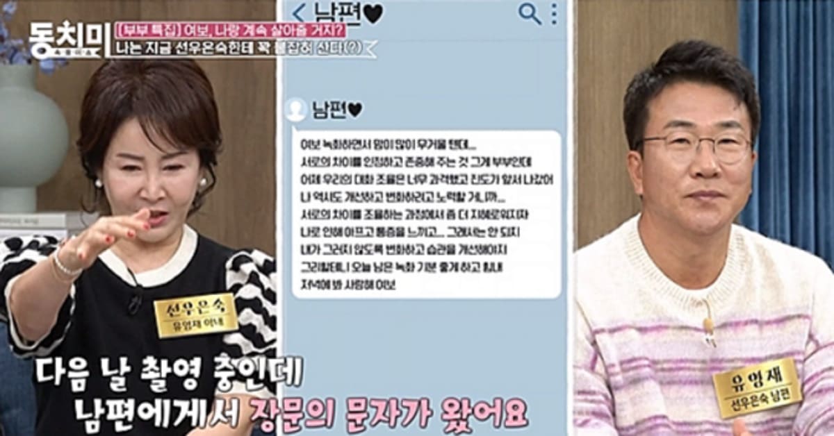 이어 선우은숙은 "같이 있는데 나는 소외당하는 것 같다."라며 "당신에게 중요한 건 내가 아니냐고 했더니 다른 사람들이 나를 어려워한다더라"라고 말했다.