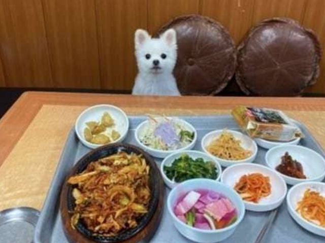 설렁탕집에서 혼자 식사하면 같이 앉아주는 강아지 화제