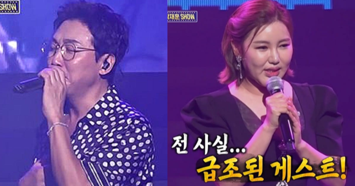트로트 가수 송가인이 탁재훈 콘서트에 깜짝 게스트로 출연했다.