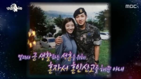 그러면서 "내가 상병 말쯤에 혼인신고를 하자고 제안했다. 아내가 혼자 가서 혼인 신고를 해줬다"라고 덧붙였다.