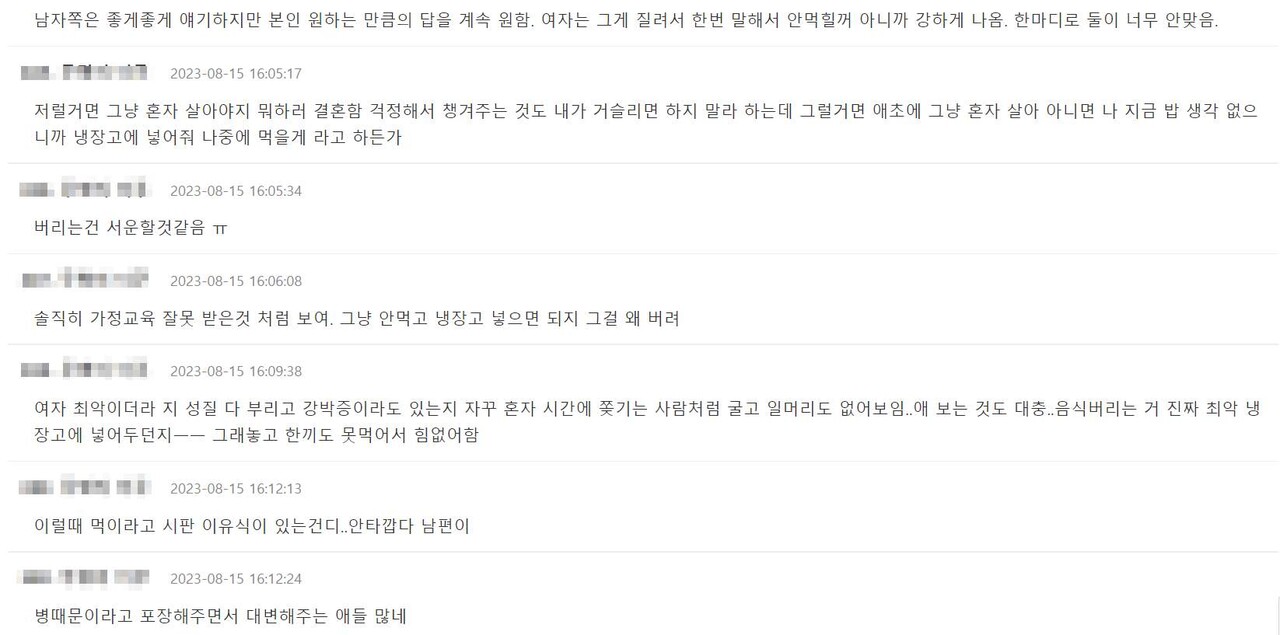 아내 "나는 밥먹기 싫다고 좋게 말했다.." 네티즌들 "저럴거면 왜 결혼..배우자에 대한 예의 없어" 지적