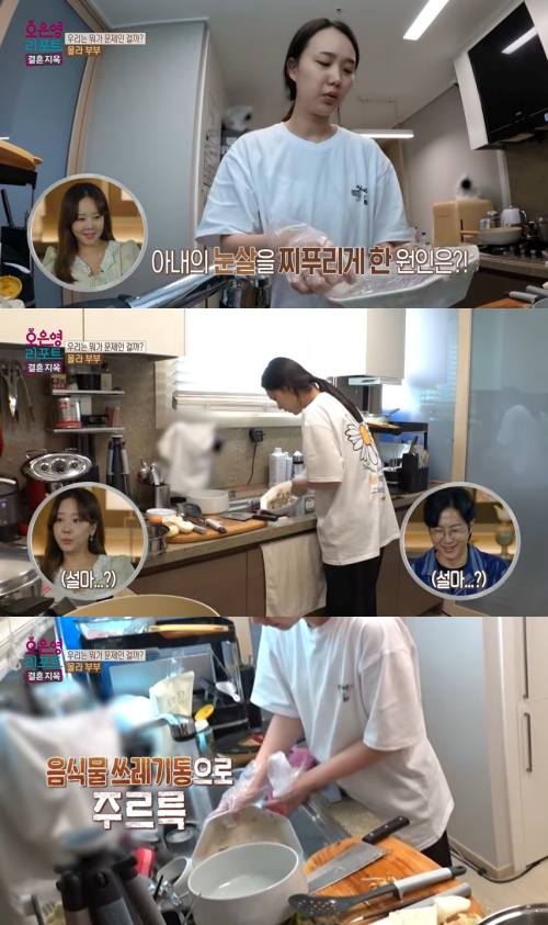 남편이 출근한 이후 아내는 홀로 육아를 하는 모습이 그려졌으며, 이유식을 만든 이후에는 남편이 남기고 간 불고기를 쳐다보며 인상을 찌푸렸다. 이내 아내는 싱크대에 남편이 차려놓은 불고기를 모두 쏟아부어 오은영 박사와 출연진들을 깜짝 놀라게 만들었다.