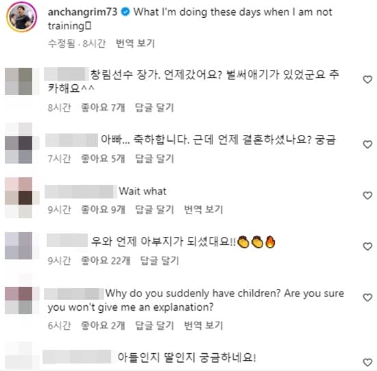 해당 사진과 글로 보아, 안창림은 아빠가 된 듯해 보였다. 그동안 안창림은 출산 소식은 물론, 결혼 소식도 밝히지 않았기에 많은 팬들은 놀라고 했다.