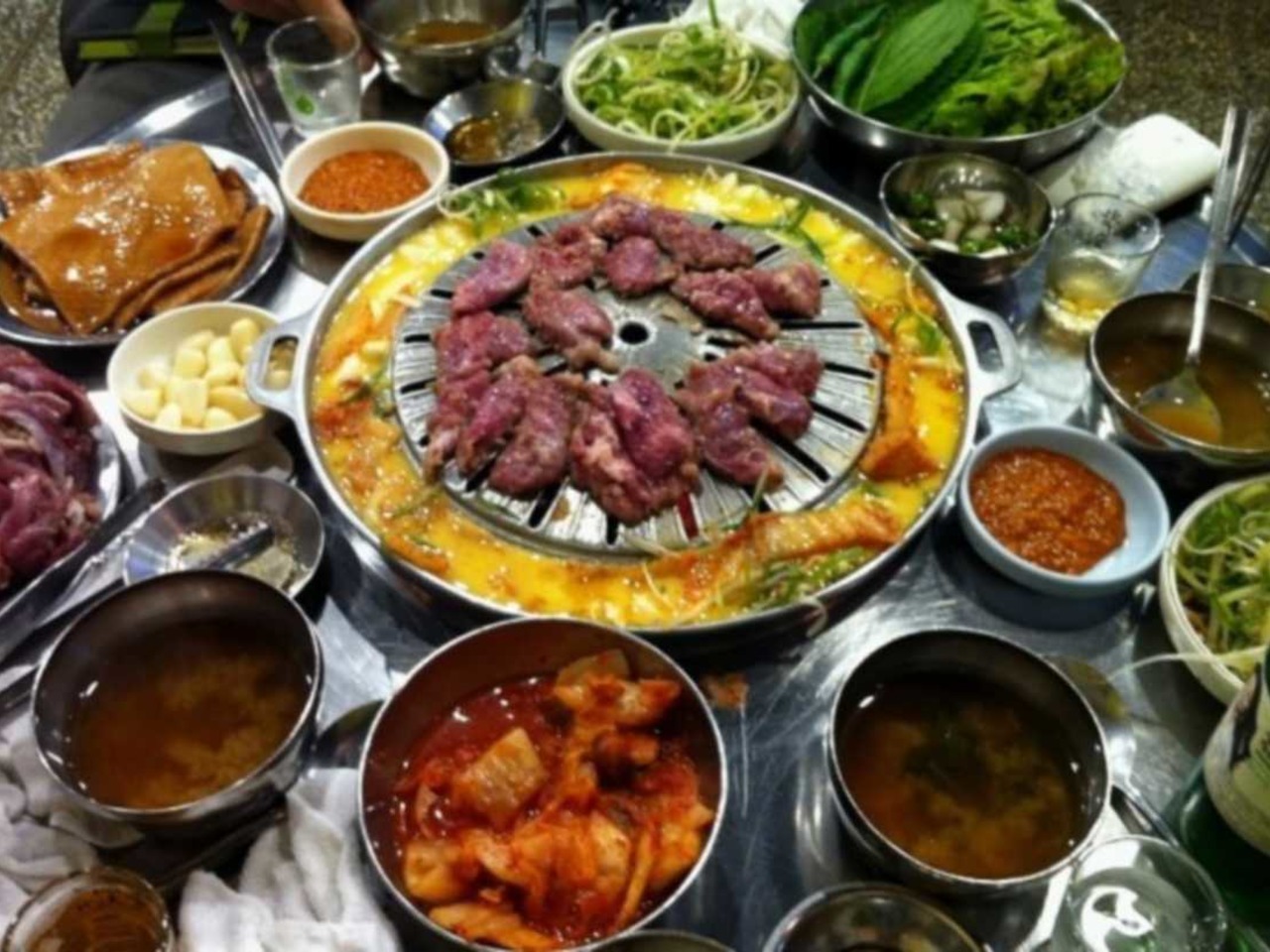 공간이 나뉘어져 있어 마치 미로처럼 느껴지는 내부는 고깃집 특유의 소란스러움과 오랜 연륜이 묻어나는 복고적 분위기다. 홀이 넓은 편이라 모임이나 회식 장소로도 손색이 없다. 평일 저녁이면 퇴근한 직장인들로 붐비며, 셀프바를 통해 반찬을 자유롭게 가져다 먹는 시스템도 편리하다.