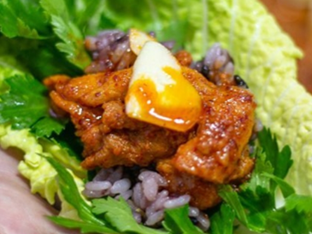 합리적인 가격으로 푸짐한 구성의 쌈밥을 만나볼 수 있는 ‘수정식당’. 대표 메뉴 ‘쌈밥’을 주문하면 돌판 위로 지글지글 끓으며 나오는 제육볶음부터 된장찌개, 강된장, 쌈 채소, 밑반찬까지 푸짐한 한 상이 차려진다. 상추, 알배추, 깻잎, 쑥갓 등 다양하게 준비되는 쌈 채소에 제육볶음과 흑미밥을 올려 풍성한 쌈을 즐기기 안성맞춤이다.