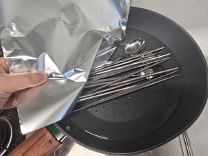 냄비에 은박지와 수저 넣고 10분 끓이기