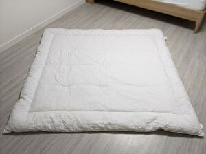 이 상태에서 다시 3~4번 반으로 접어 수납하면 되는데, 이때 마지막 접힌 면이 바닥을 향하게 수납장에 눕혀 두는 것이 중요하다. 이불을 세워서 보관하면 다시 중력에 의해 충전재가 아래로 쏠리는 상황이 반복되기 때문에, 눕혀 보관하는 방식이 원칙으로 통한다.