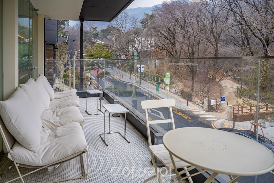 3층의 테라스 좌석이 있는 카페 몽브루 |