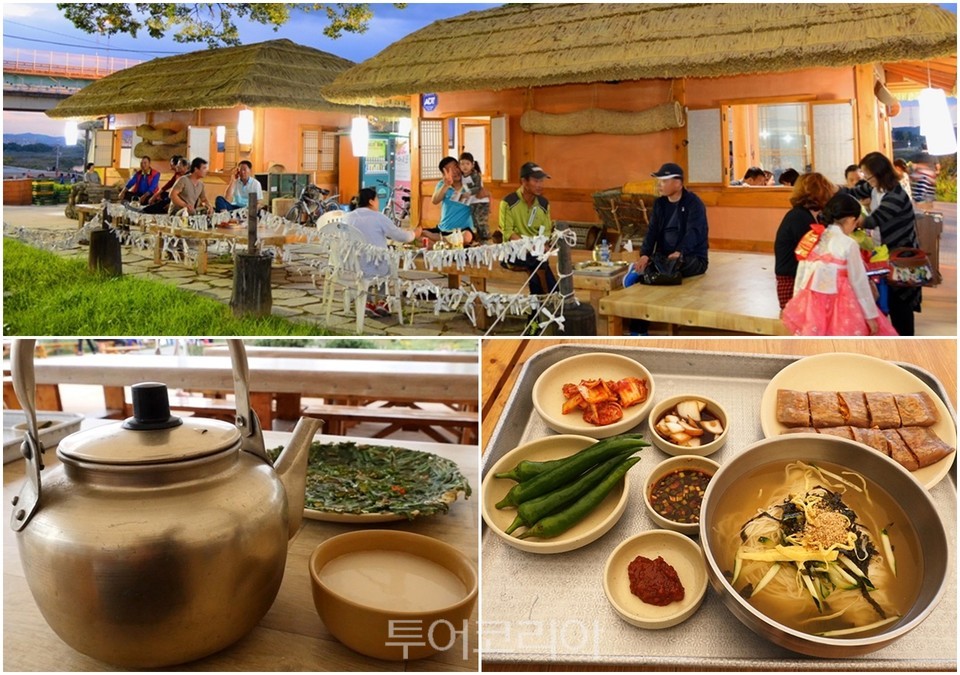 보부상 쉼터였던 주막촌에선 옛 나루터 정취 즐기며 막걸리, 잔치국수, 국밥, 부추전, 두부 등을 먹는 즐거움을 만끽할 수 있다. 때를 잘 맞추면 사문진 낙조의 아름다운 풍경은 ‘덤’이다.