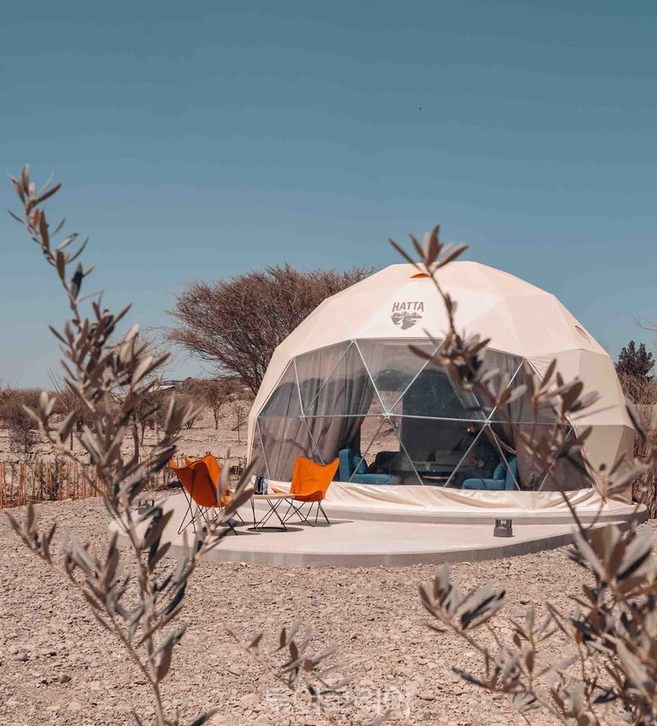 최근 하타 지역에 새롭게 오픈한 글램핑장이 있다. 바로 두바이 도심에서 약 1시간 30분 거리에 위치한 하타 돔 파크(Hatta Dome Park)으로, 거친 돌산으로 둘러싸인 엔터테인먼트 공간 하타 와디 허브(Hatta Wadi Hub) 인근에 자리잡고 있다.